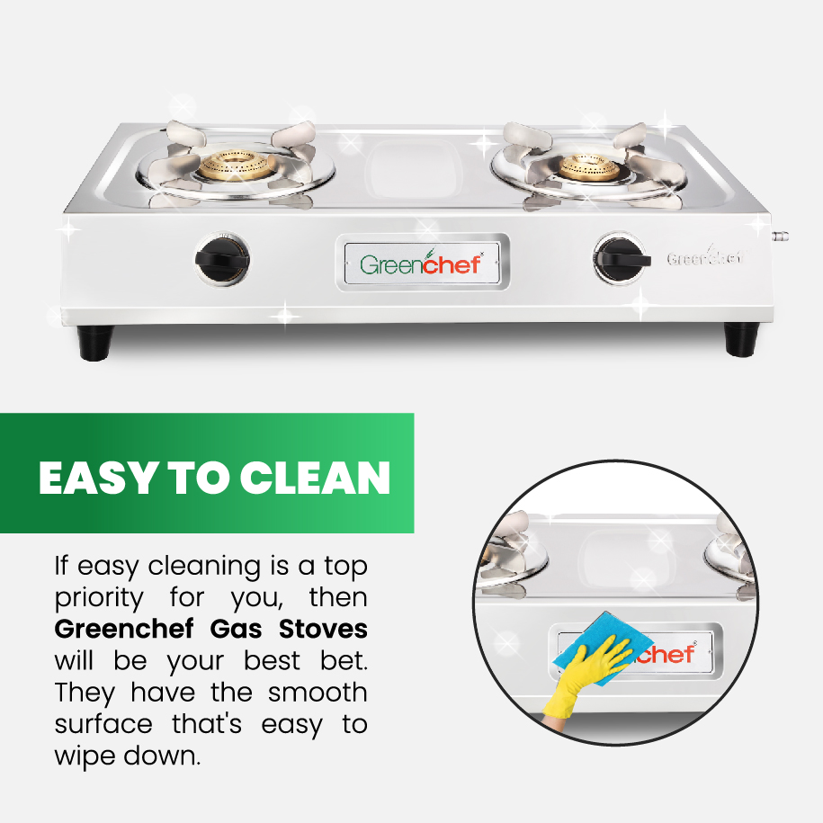 The Greenchef Milano gas stove is designed with strong and firmer gripped legs which are non-breakable and rustproof. These firmer legs of a gas stove feature Anti-Skid Feet which enables the gas stove to firmer withstand even when the pressure or force is applied.